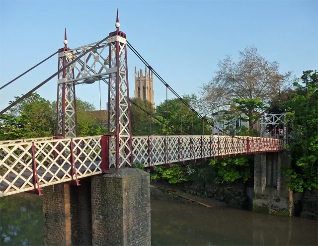 My local bridge, Daly's Bridge, known to one and all as d'Shakey Bridge (or to my kid niece as d'Wobbly Fridge) is a beautful pedestrian suspension bridge designed and built in England in 1927, not long after the South was freed.